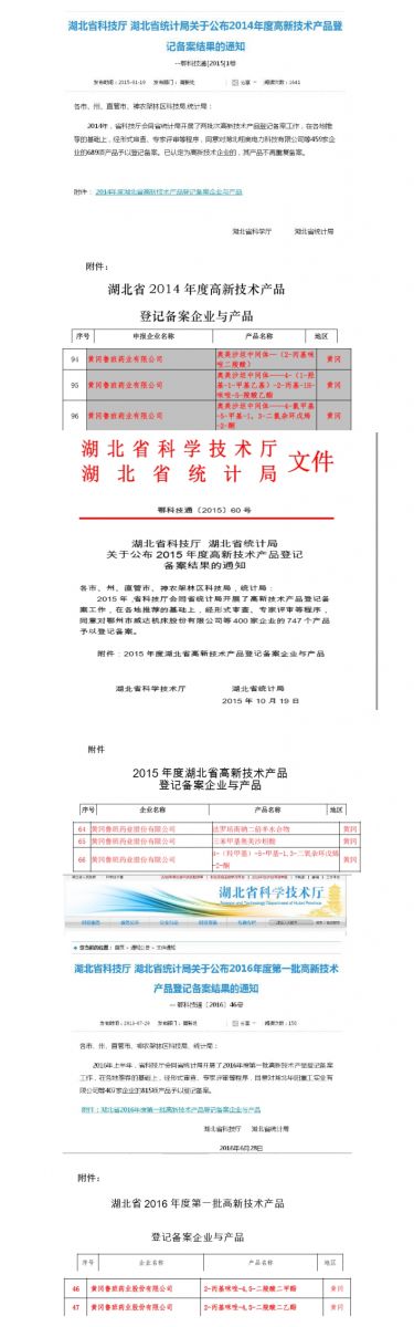 2016年6月,公司2-丙基咪唑-4,5-二羧酸二甲酯、2-丙基咪唑-4,5-二羧酸二乙酯2個(gè)產(chǎn)品被湖北省科學(xué)技術(shù)廳授予高新技術(shù)產(chǎn)品予以登記備案,截止今日,公司高新技術(shù)產(chǎn)品已達(dá)8項(xiàng)。